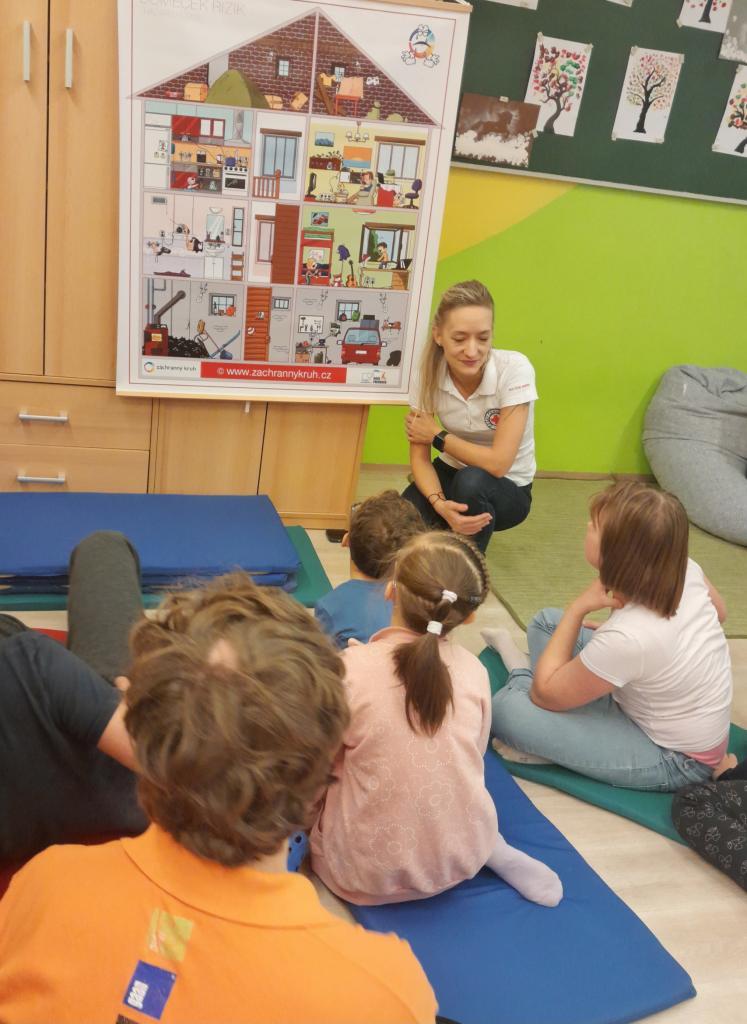 Součástí bylo také opakování, jaké číslo volat v případě požáru, zranění či jiné mimořádné události. Žáci si prakticky vyzkoušeli, jak poskytnout první pomoc – prováděli masáž srdce a nácvik dýchání z úst do úst na figurínách. Cílem bylo zvýšit povědomí o bezpečném chování, rozvíjet zodpovědnost a posílit odvahu pomoci v krizové situaci.