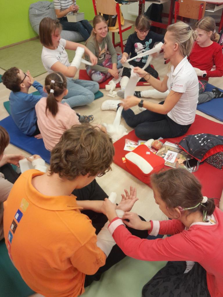 V pondělí 10.11. proběhla v naší škole výuka první pomoci. Žáci se dozvěděli nejen, jak správně reagovat v případě úrazu, ale také jak předcházet nebezpečným situacím v domácnosti.